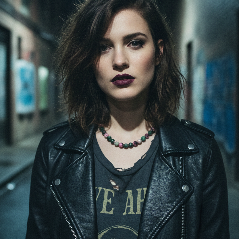 Pink and Green Agate & 925 Silver Beaded Necklace Details: